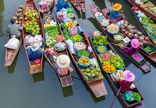 On day 3, you will experience two very special markets. First, at Maeklong Railway Market, witness the vendors swiftly relocate their businesses whenever a train passes by—an amazing scene! Then, at Damnoen Saduak Floating Market, you will see colourful boats full of fresh fruits and vegetables, giving you a peek into local life. It’s a fun and lively place to shop and enjoy the vibrant atmosphere. After your visit, you will head back to Bangkok for the night.